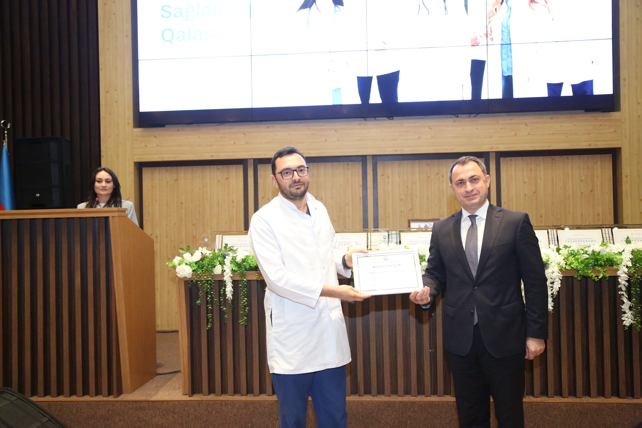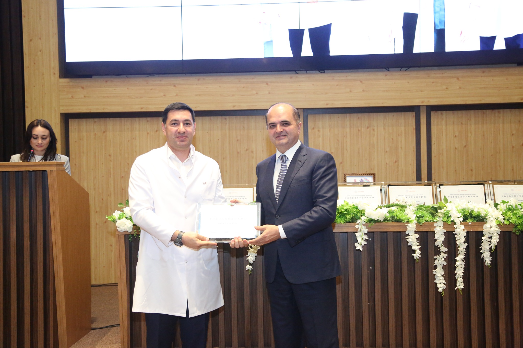 Daha sonra 17 İyun – Tibb İşçilərinin Peşə Bayramı Günü münasibətilə səhiyyə sahəsində səmərəli fəaliyyət göstərən bir qrup tibb işçisi təşəkkürnamə ilə təltif edilib. Eyni zamanda Yeni Azərbaycan Partiyasına (YAP) üzv qəbul edilmiş tibb müəssisəsi əməkdaşlarına vəsiqələr təqdim olunub.