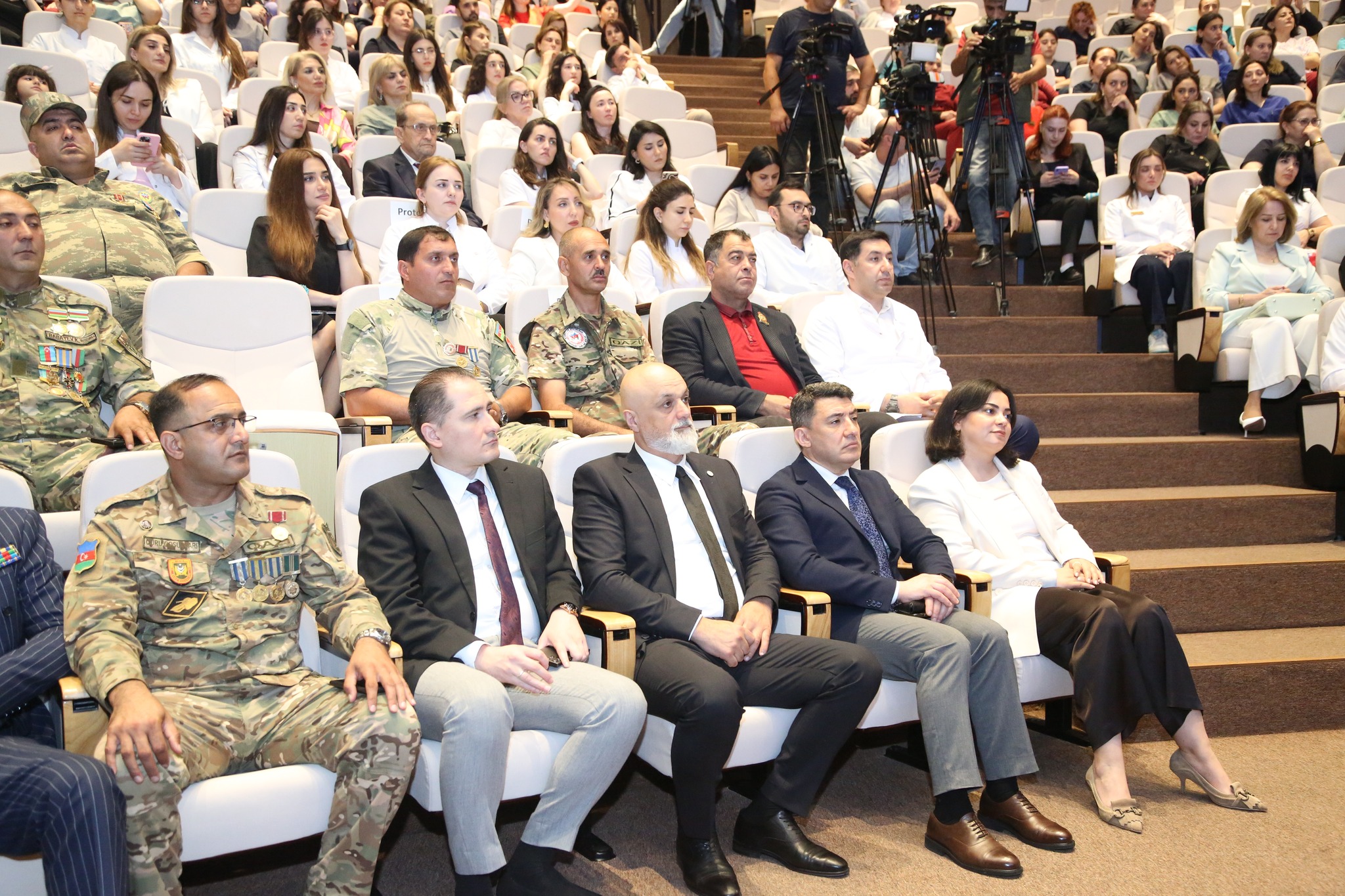 Tədbirdə rəsmi çıxışlardan öncə “Cəbhə qəhrəmanlarının ağ xalatlı qəhrəmanlara təşəkkürü” adlı videoçarx nümayiş etdirilib.